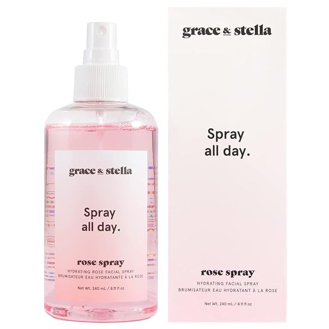 grace & stella Award Winning Rose Water Facial Spray (240ml) - Vegan - Rose Water Spray for Face - Rosewater Spray Toner Rose Hydrosol - Rose Spray Facial Mist - Rosewater Spray Toner Rose Hydrosol