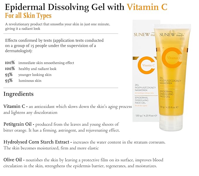 SunewMed+ Vitamin C Epidermal Dissolving Face Gel for all Skin Types Vitamin C Gel for Face Exfoliating 4.06 Fluid Ounce