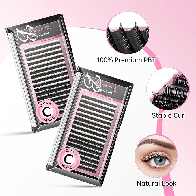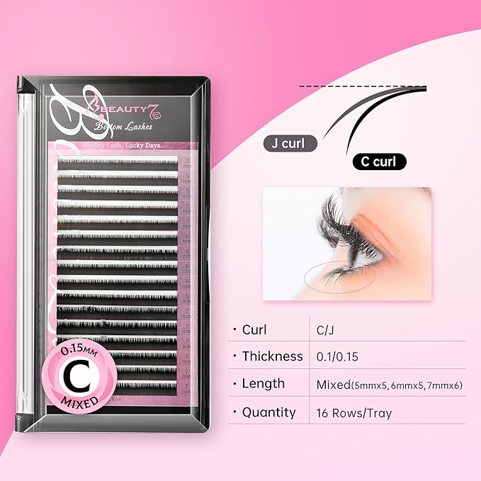 Beauty7 Mixed Under Lash Volume Individual False Eyelash Extension Tray Matte C Curl 0.15mm Thickness 5/6/7mm Length