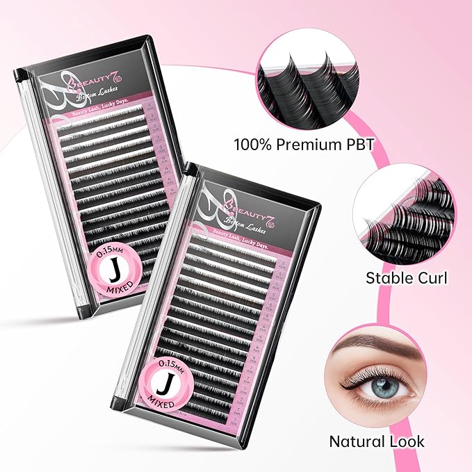 - C Culr/J Curl. Thickness: 0.1mm/0.15mm. Length: 5mm/6mm/7mm. 5 rows of 5mm, 5 rows of 6mm and 6 rows of 7mm.