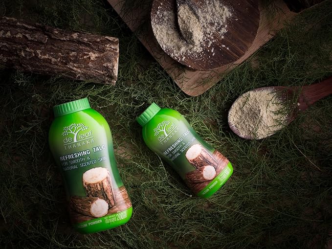 DE LEAF THANAKA Refreshing Talc Smooth and Natural Scented Skin, Talcum Powder Beauty Skincare Face Body Clean Fresh Cooling Sooth Irritation, 180 g 1 Pack Count
