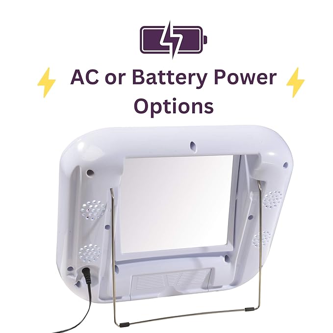 - COMPACT AND CONVENIENT - This makeup mirror can be placed on any desk, vanity, or countertop. The mirror's folding back stand makes it portable and ideal for travel. Use AA batteries to power the mirror for use on the go.