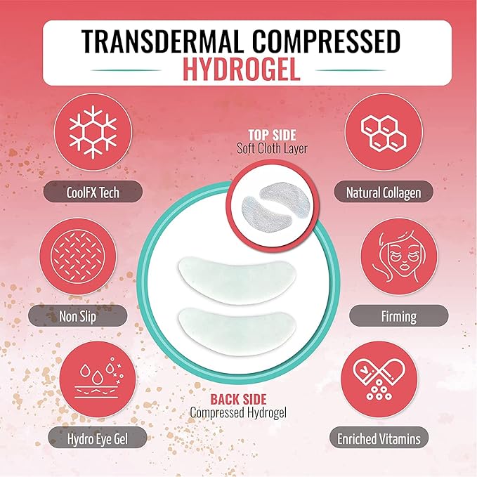 • Non-Slip: Finally, an under eye mask not drowning in serum. Beneath the soft fabric is a compressed transdermal hydro eye gel layered with nutrients and CoolFX - A refreshing cooling sensation. While other under eye pads slip off, Look At Me under eye masks stay firm so you can complete the dark circles under eye treatment while completing your to do list.
