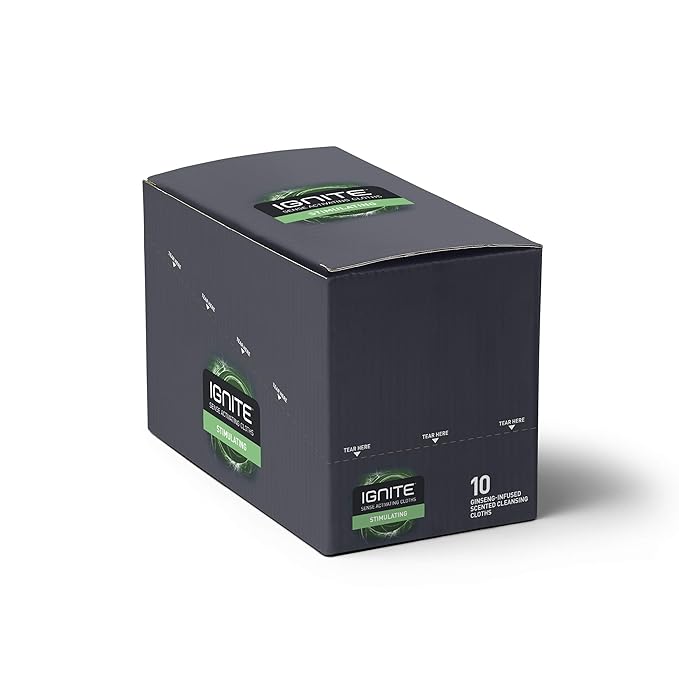 Ignite Mens Body Wet Wipes, Extra Thick 8" x 8" Shower Wipes, Stimulating Scent, 10 Count (Pack of 5)