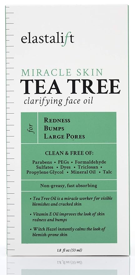 Elastalift Tea Tree Oil Facial Spot Treatment W/Witch Hazel Clarifying Tea Tree Oil For Face Helps Target Redness, Acne, Bumps, Dry Itchy Skin, & Large Pores. Non-Irritating Formula, 1.8 Fl Oz