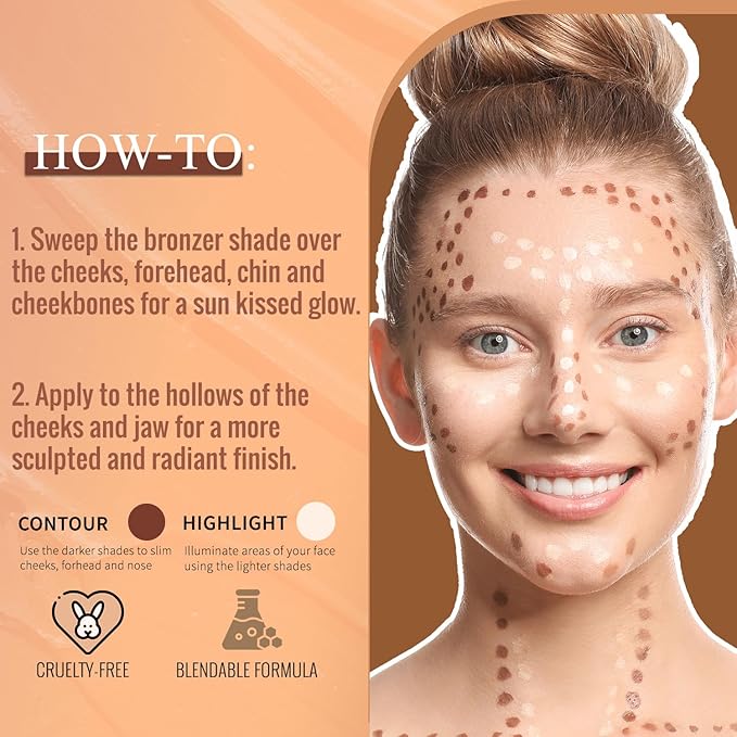 - Our Highlight & Contour Palette allows you to sculpt your face effortlessly, Perfect for both beginners and professionals, Achieve an ultra-defined look with its Highlight & Contour shades.