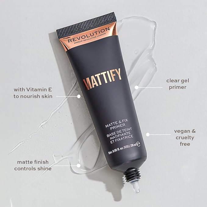 Makeup Revolution Mattify Matte and Fix Face Primer, Lightweight & Translucent Formula, for a Smooth Complexion, Vegan & Cruelty-Free, 0.94 Fl Oz
