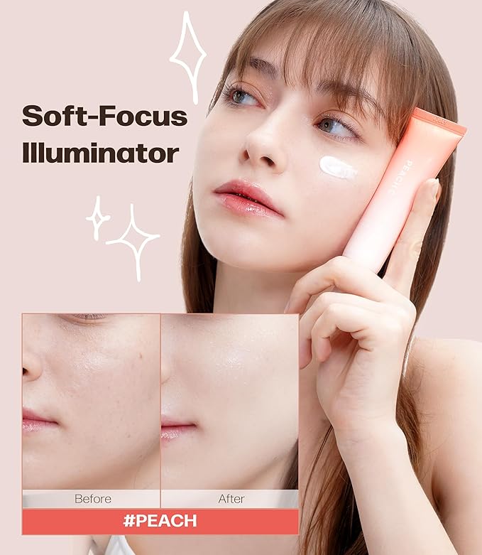 PEACH C Peach Glow Make Up Base - Hydrating, Moisturizing, Illuminating Pearl Make Up Base - Lightweight, Smudge-Proof & Pearly Shimmer Korean Makeup Primer Illuminating Face Cream (1.18 fl oz)