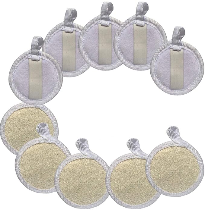 Loofah Sponge Exfoliating Facial Cleaning Pads,10 Packs Natural Loofa Face Scrubber Large Cleanser for Men Women Bath Spa Cleansing,3.15 Inches Dia