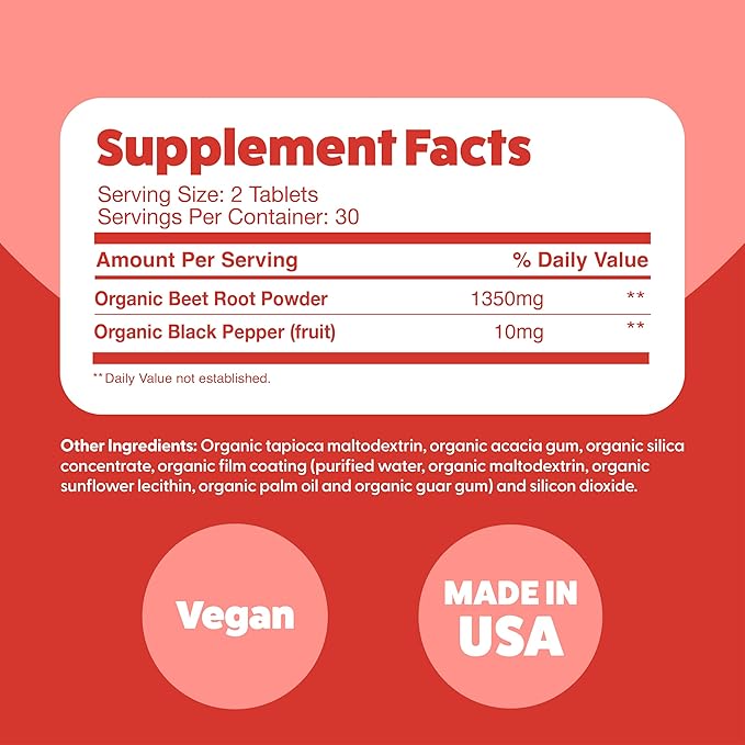 Feel Great Vitamins Organic Beet Root Powder Supplements (Tablets) | Beets Nitric Oxide Supplement | Red Beet Powder Support Healthy Circulation with Natural Nitrates for Natural Energy*
