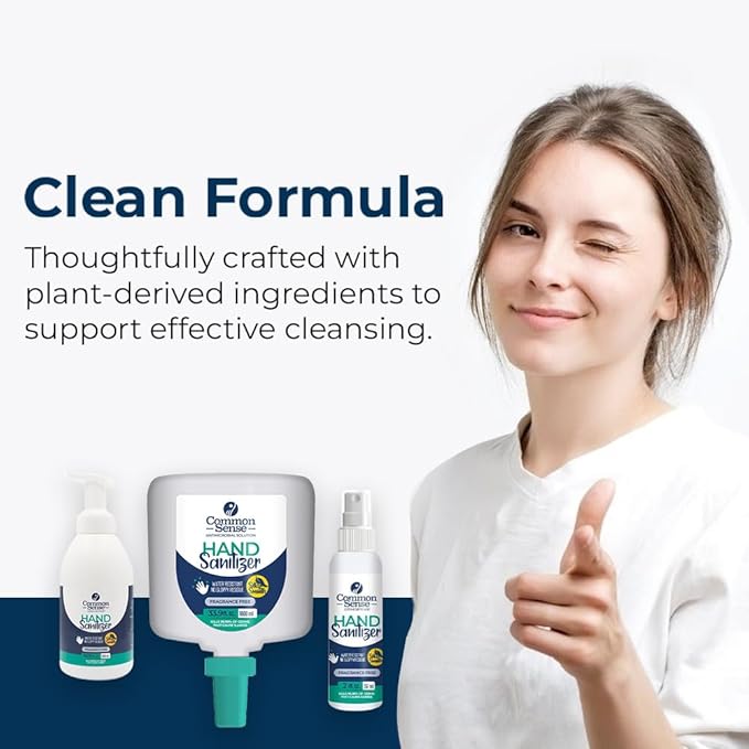 Common Sense Hand Sanitizer: Long Lasting Natural and Moisturizing, Quick Drying Foaming Formula, Mini Pump Bottle 16.9 Fl oz for Home & Office Use