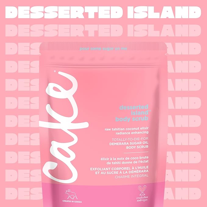 Cake Beauty Desserted Island Vegan Body Sugar Scrub - Shea Butter, Demerara Sugar & Coconut Oil - Gentle Exfoliating Hand, Leg, Foot & Body Sugar Soap Scrub & Moisturizing Shower Wash for Women