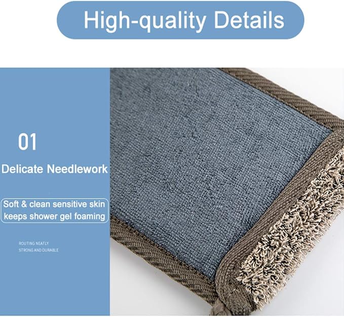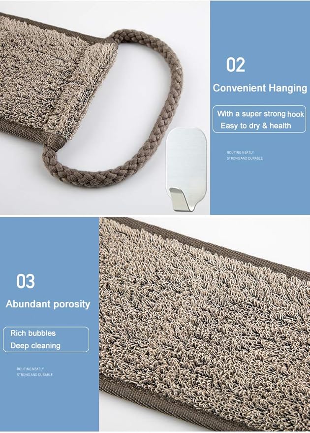 • Friendly Natural Material: The loofah back scrubber is made of rain-dew flax from the best place of origin, it is a pleasant natural fiber for the skin, has good hygroscopicity, is fast-drying, and is an excellent skin exfoliator.