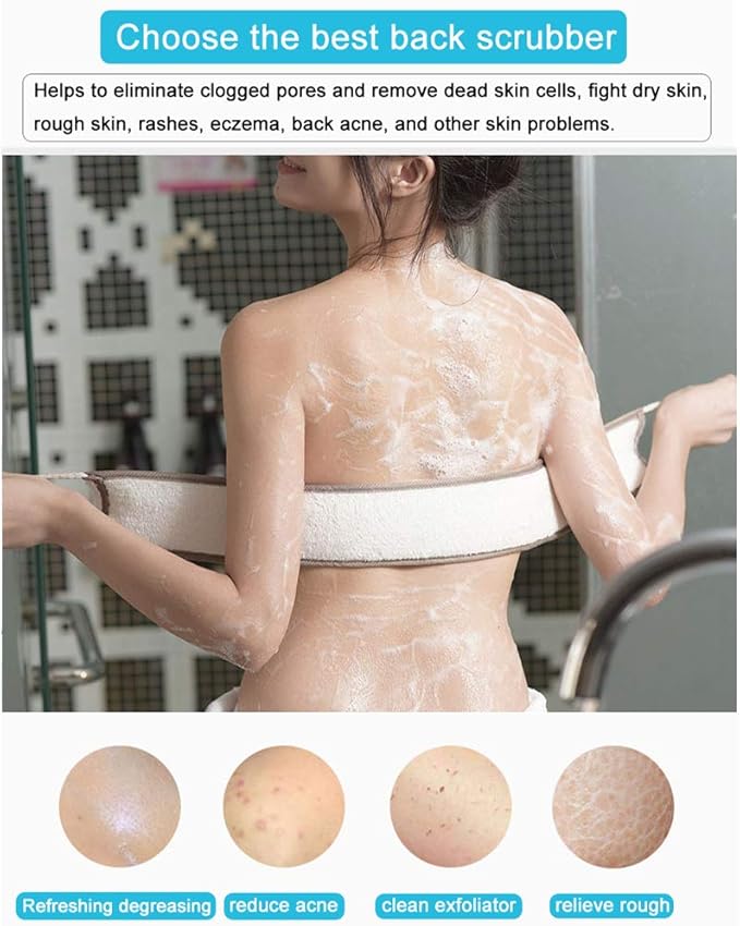 Loofah Back Scrubber for Shower, Natural Soft Flax Back Exfoliator Cleaner for Shower Acne, Extra Long Back Scrub Washer, Dual-Sided Bath Exfoliating Scrubber, Deep Clean&Invigorate Skin for Men/Women