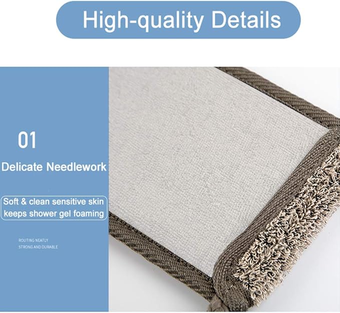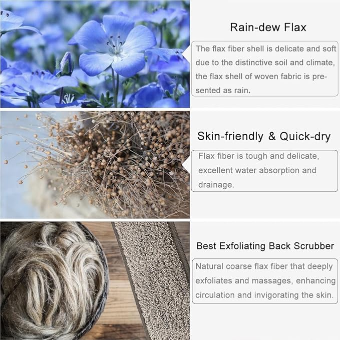 • Friendly Natural Material: The loofah back scrubber is made of rain-dew flax from the best place of origin, it is a pleasant natural fiber for the skin, has good hygroscopicity, is fast-drying, and is an excellent skin exfoliator.