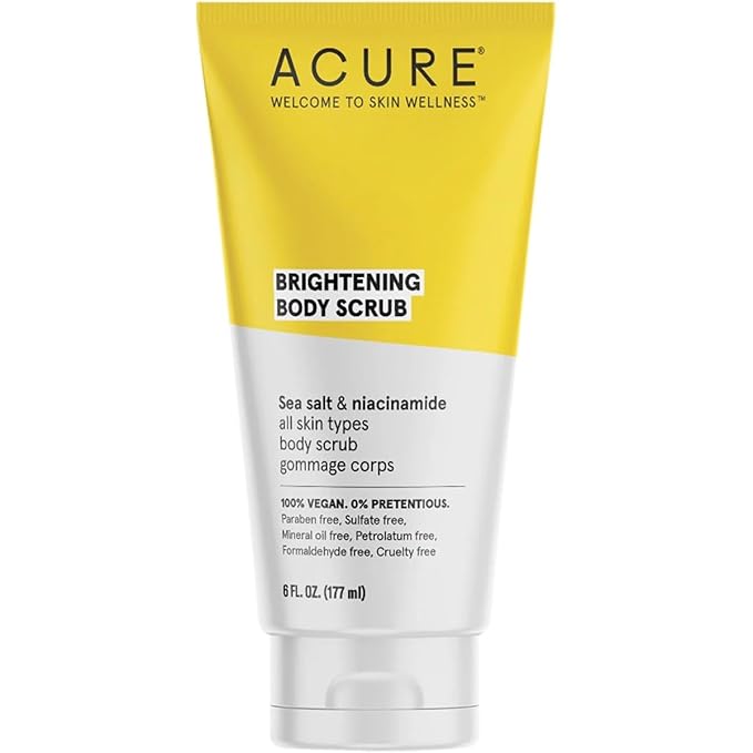 - SEA SALT & NIACINAMIDE BLEND (VITAMIN B3) - ACURE Brightening Body Scrub features a potent blend of sea salt and niacinamide. Sea salt exfoliates dead skin cells, promoting smoother, healthier skin, while niacinamide helps reduce signs of aging, leaving you with a youthful, radiant glow.