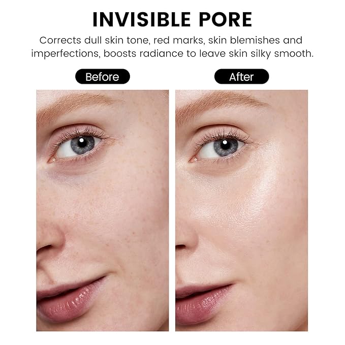 - 【Invisible Pore】Face makeup foundation primer base effectively covers and reduces the appearance of large pores, acne marks, fine lines, and wrinkles for a smoother skin.Corrects dull skin tone, red marks, skin blemishes and imperfections, boosts radiance to leave skin silky smooth.