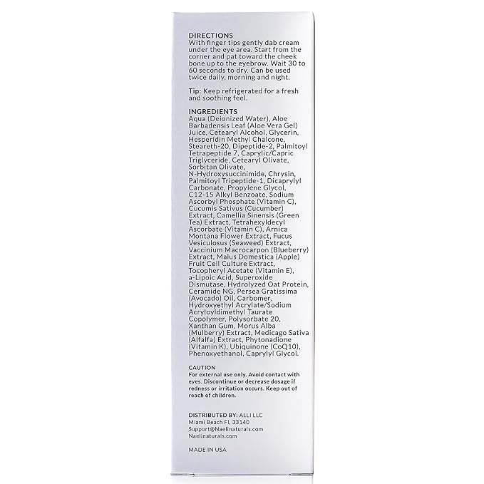 NAELI Eye Cream for Dark Circles, Puffiness & Wrinkles with Anti Aging Apple Stem Cell & Peptide Complex - Reduces Fine Lines, Diminishes Bags & Restores Under Eye, 1.4 oz