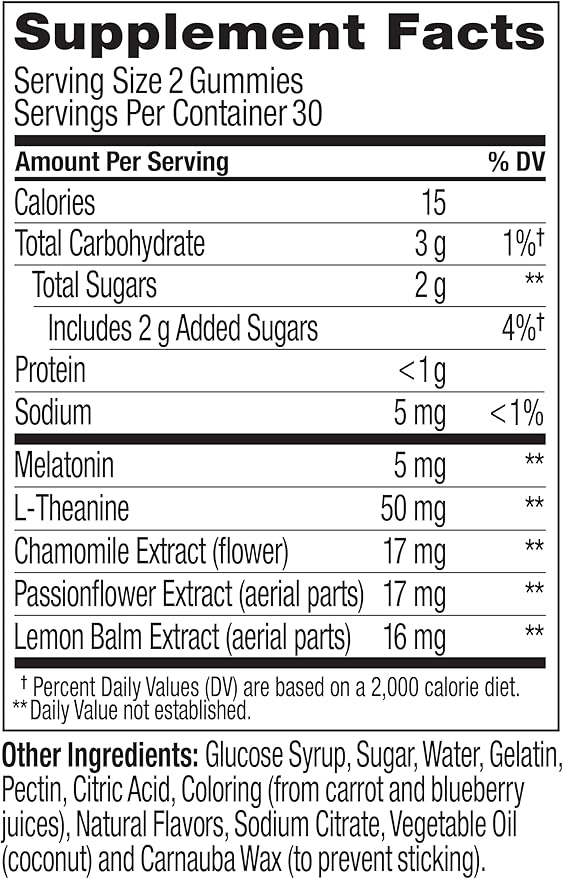 - Special Ingredients : Chamomile Extract, L-Theanine, Melatonin
