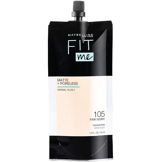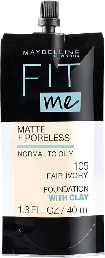 Maybelline New York Fit Me Matte + Poreless Liquid Foundation, Pouch Format, 105 Fair Ivory, 1.3 Ounce