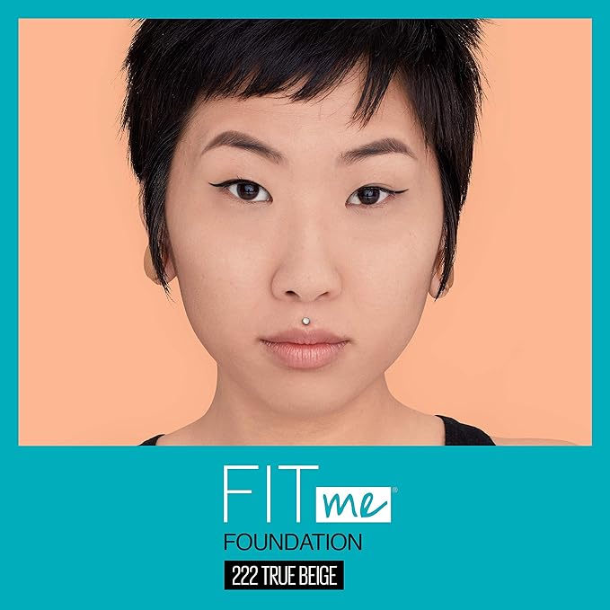 Maybelline New York Fit Me Matte + Poreless Liquid Foundation, Pouch Format, 222 True Beige, 1.3 Ounce