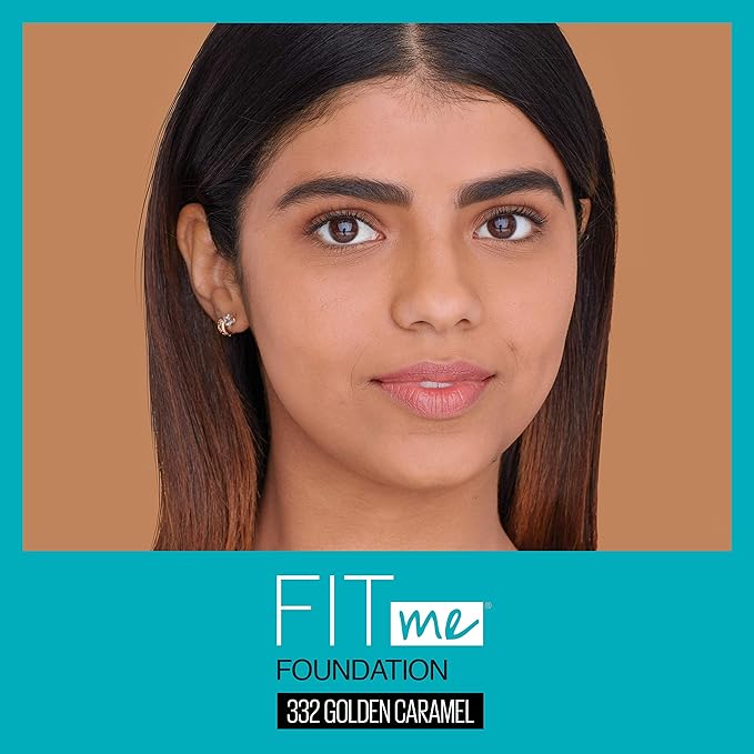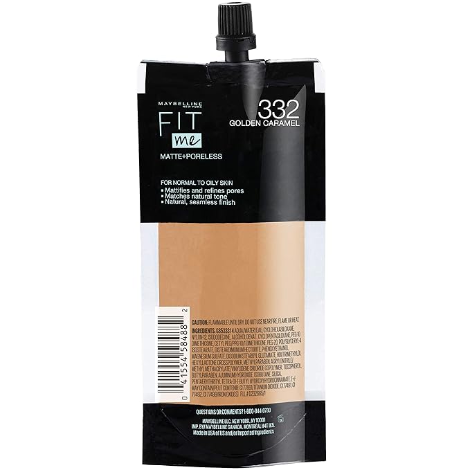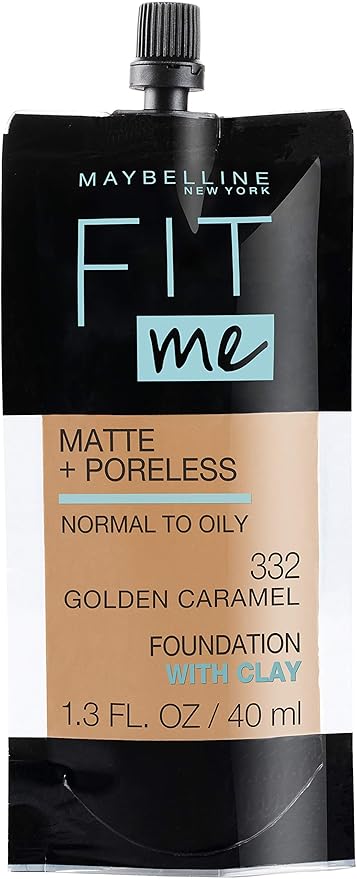Maybelline New York Fit Me Matte + Poreless Liquid Foundation, Pouch Format, 332 Golden Caramel, 1.3 Ounce