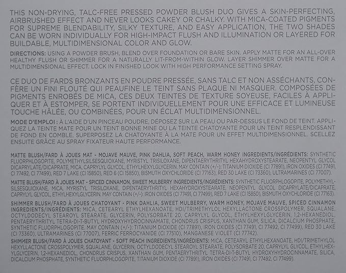 • INCLUDES MATTE & SHIMMER FINISHES: Here's something to blush about. This blush compact includes two coordinating monochrome shades, one shimmer and one matte, for creating endless looks. Use one for your desired finish or layer them for multidimensional radiance.