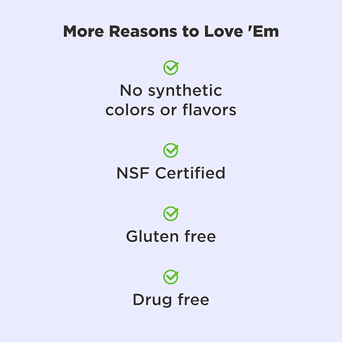 - DELIGHTFULLY TASTY: Naturally flavored soothing blend of berry flavor with other natural flavors. Made with no synthetic colors or flavors and are gluten free. 60 gummies per pouch.