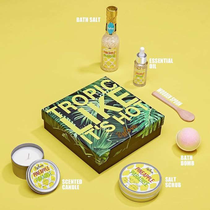 - A Best Bath Set: This bath spa set includes self care with a wonderful assortment of products for the ultimate spa experience as tropical Hawaii without leaving your home