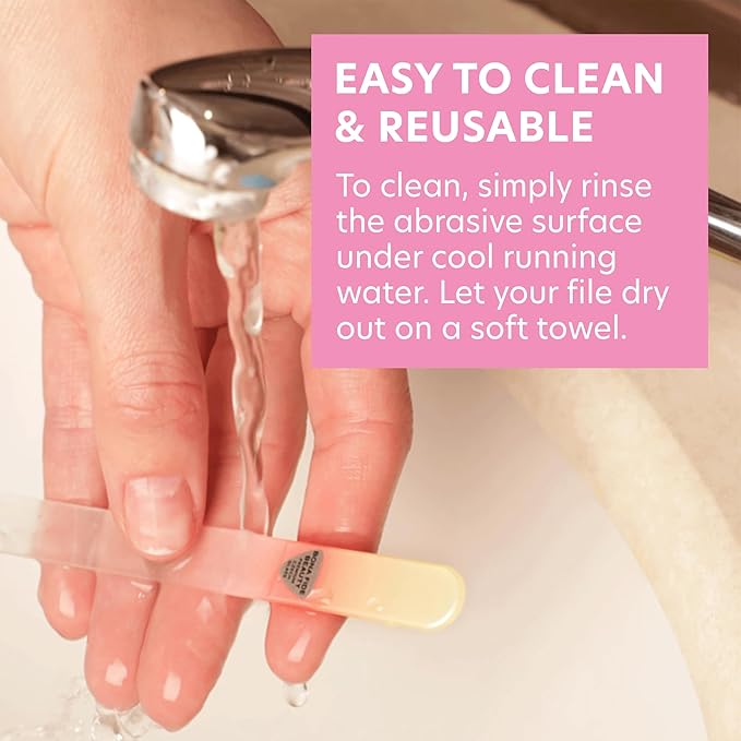 - Durable, Long-Lasting and Reusable Czech Glass Nail File: premium Czech βBohemianβ glass, tempered (toughened) to ensure the glass is strong, wear-resistant & retains the integrity of the filing surface after multiple uses. The surface of an etched glass file lasts longer than non-etched nail files.