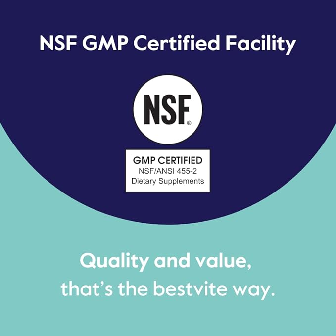 - BESTVITE QUALITY: All Bestvite products are manufactured in the USA in accordance with GMP standards and undergo 3rd-party testing before release.