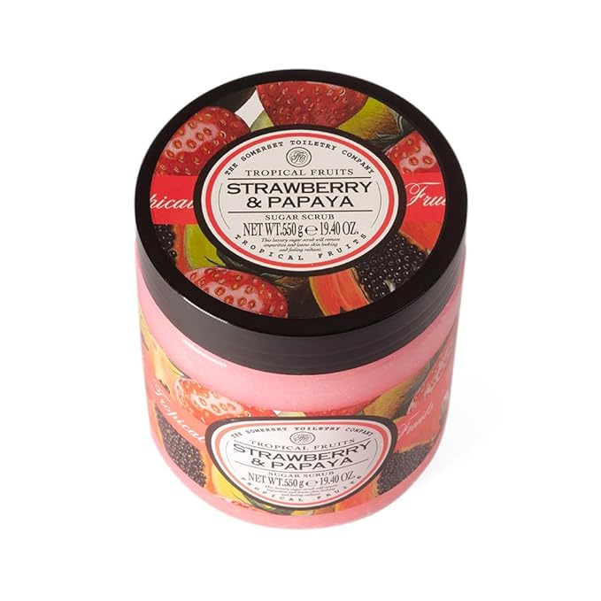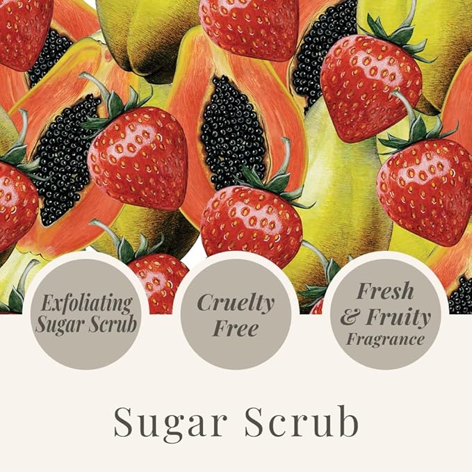 - This exotic Sugar Scrub is available in four fruity fragrances: Coconut & Lime, Grapefruit & Orange, Mango & Passion Fruit and Strawberry & Papaya
