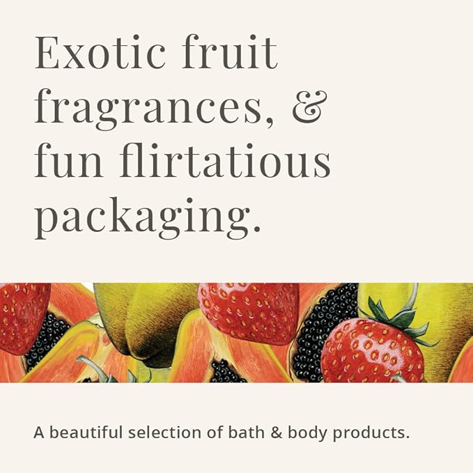 - Exotic fruit fragrances, and fun flirtatious packaging; this range is designed to entice the senses and invoke dreams of a faraway tropical paradise. Luscious scents and vibrant packaging designed to brighten up any bathroom