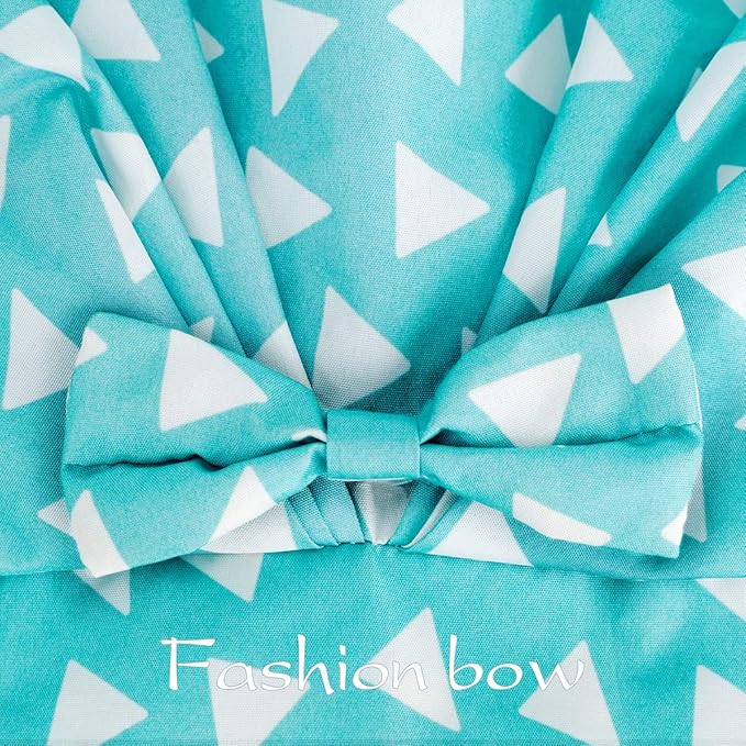 Auban Extra Large Shower Cap, Bowknot Double Layer Reusable Bath Hair Caps With Silky Satin for Women Beauty Bathing, Hair Spa, Home Hotel Travel Use (Blue Triangle)