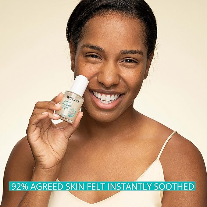 • Aveeno Calm + Restore designed for sensitive skin with nourishing oat goes beyond soothing & restores skin's natural moisture barrier. Serum leaves skin feeling hydrated after just one use. Plus, 92% agreed that skin felt instantly smooth