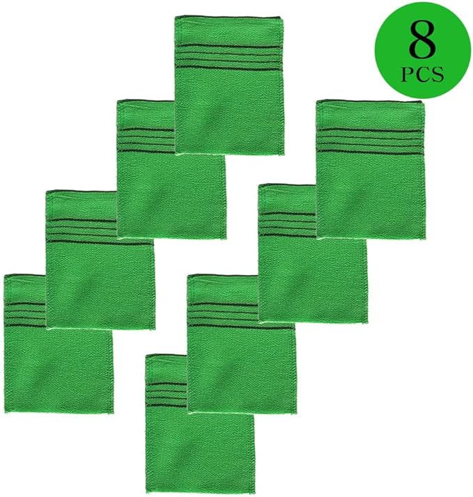 Korean Asian Exfoliating Bath Washcloth Mitt for Remove Dead Skin.Exfoliating Body Scrubber.Exfoliating Gloves for Body Scrub (Green 8)