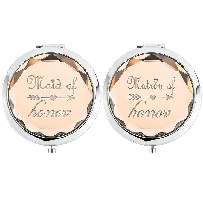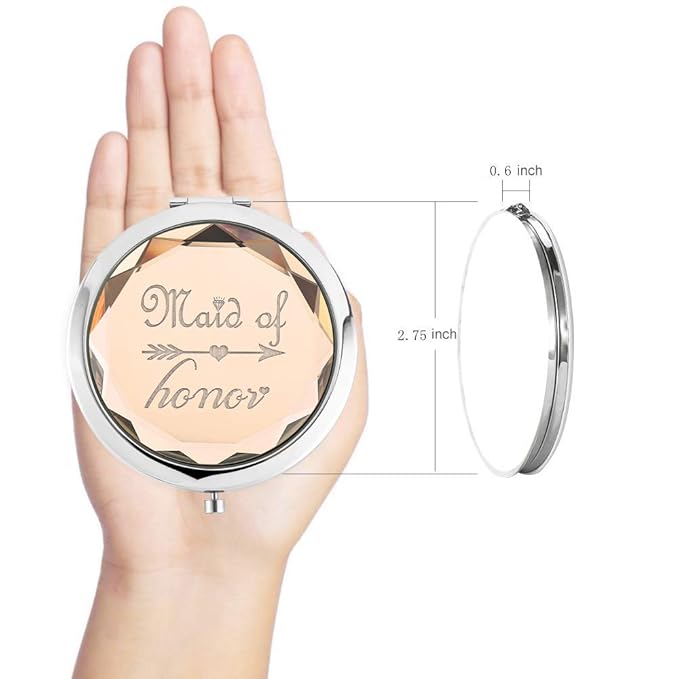• 【PACKAGE INCLUDE】: 1 champagne maid of honor makeup mirror and 1 champagne matron of honor makeup mirror