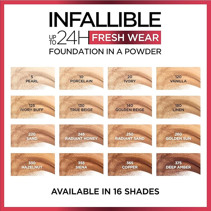 L'Oreal Paris Infallible Fresh Wear Foundation in a Powder, Up to 24H Wear, Ivory, 0.31 oz.