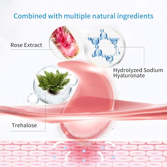 • 【Active Ingredients】Combined with multiple natural ingredients: Rose Extract; Applicable to all skin types due to its outstanding moisturizing and antiallergic ability. Hydrolyzed Sodium Hyaluronate; Mate dry and coarse skin becomes soft, tender, and elastic. Trehalose: The protein molecule vitality is protected to keep cell viability and moisture.