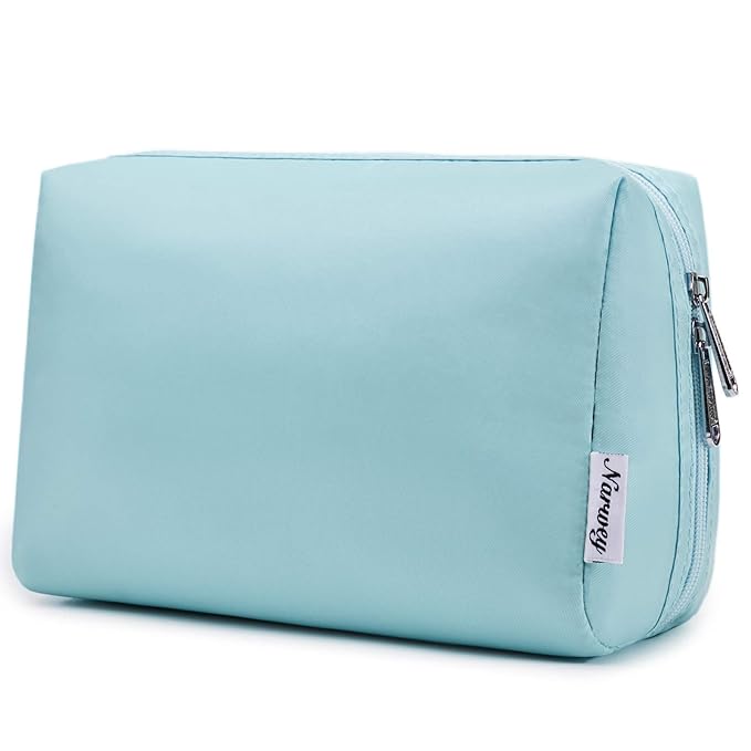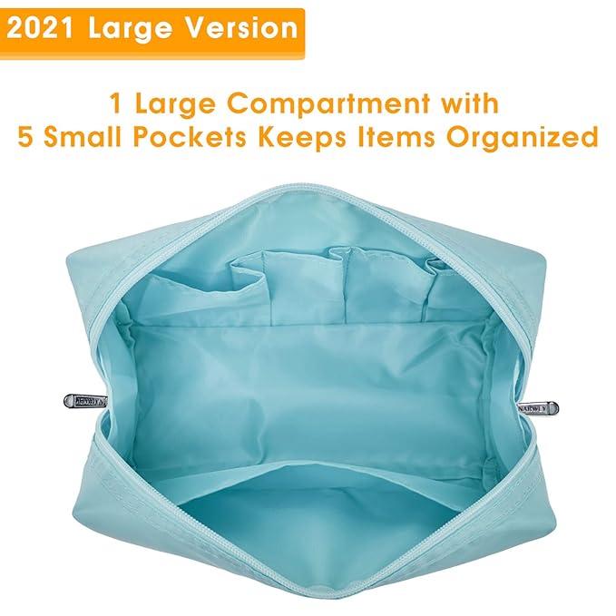 Narwey Cute Makeup Bag Travel Cosmetic Bag Organizer Toiletry Bag Make Up Bags with Compartments for Women Girls (Large, Sky Blue)