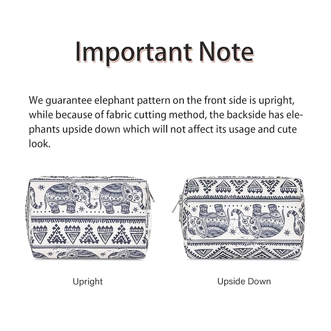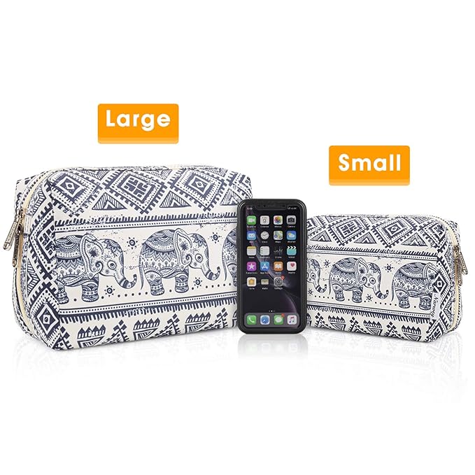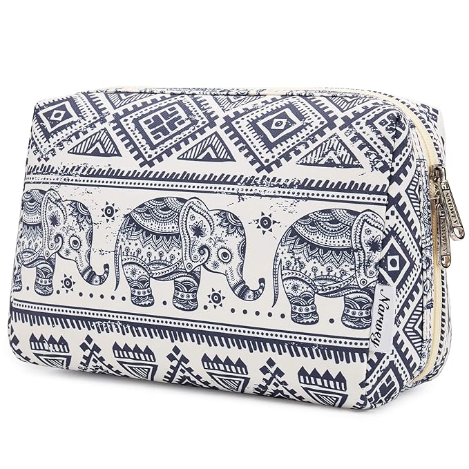 Narwey Cute Makeup Bag Travel Cosmetic Bag Organizer Toiletry Bag Make Up Bags with Compartments for Women Girls (Large, Elephant)