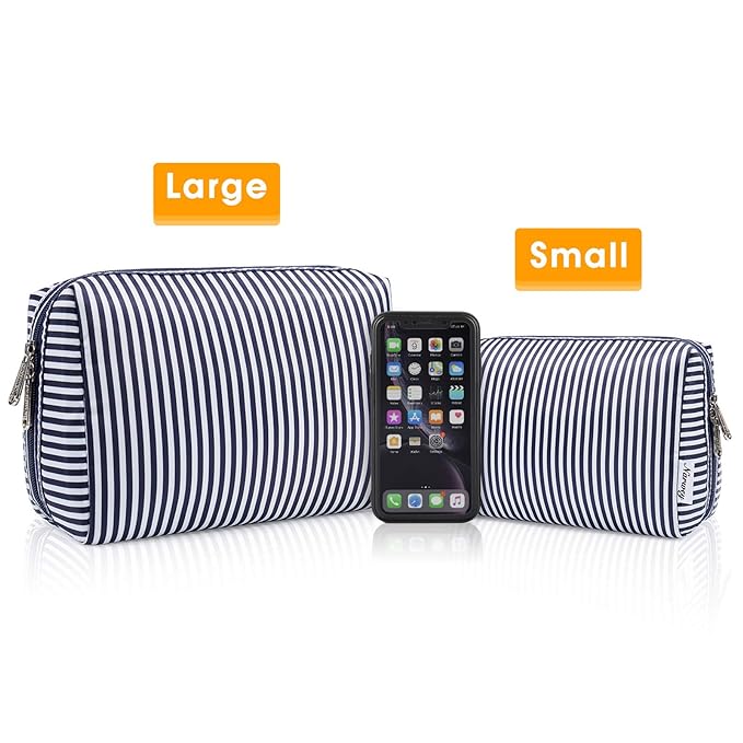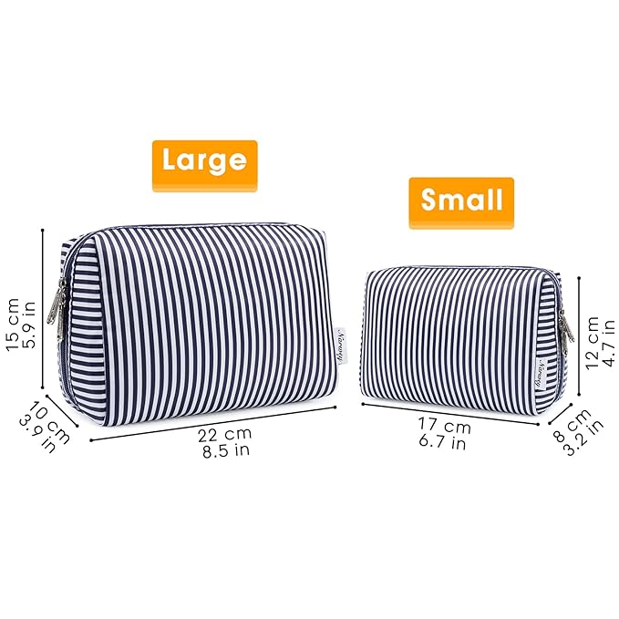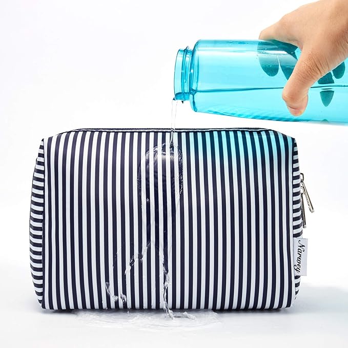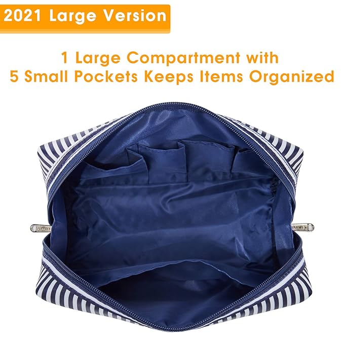 Narwey Cute Makeup Bag Travel Cosmetic Bag Organizer Toiletry Bag Make Up Bags with Compartments for Women Girls (Large, Blue Stripe)
