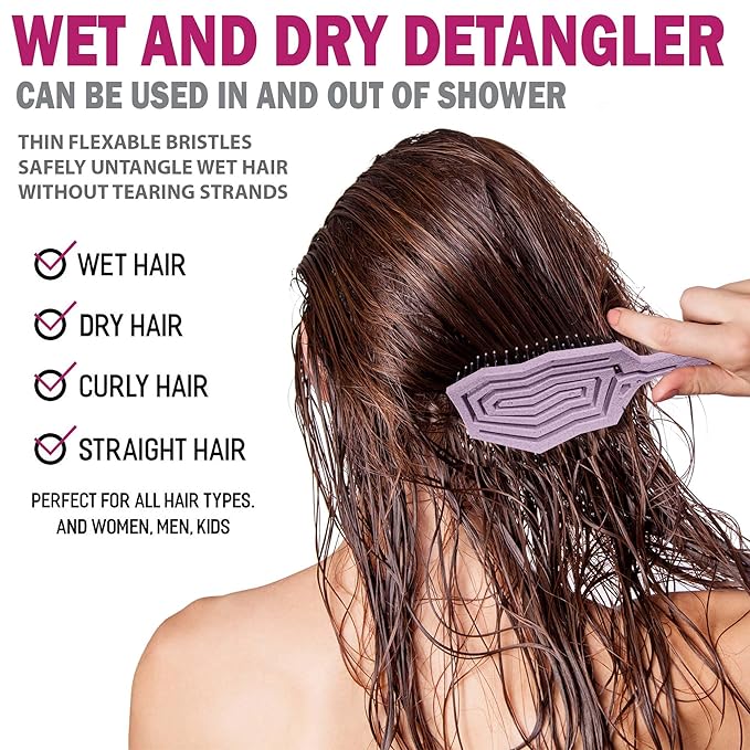 - WORKS ON VARIOUS HAIR TYPES - Designed to be used on wet or dry hair, this brush easily removes every knot and tangle. It can be used on straight, curly, natural, thin, thick, kinky, coily, frizzy, dyed, extensions, wigs, and even pets love it.