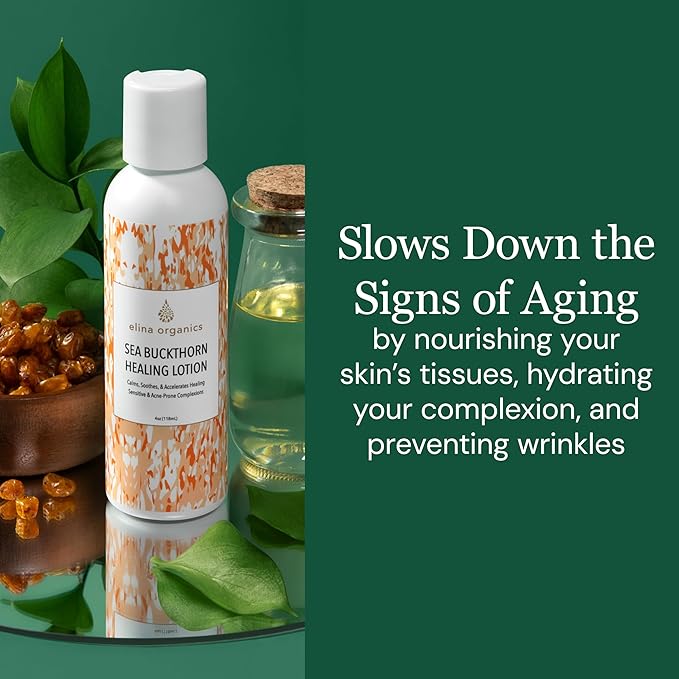 Sea Buckthorn Healing Lotion, 4oz – Soothing Moisturizer with MSM, Black Willow Bark & Zinc Oxide – Organic, Vegan – Repairs Acne, Redness & Skin Irritation