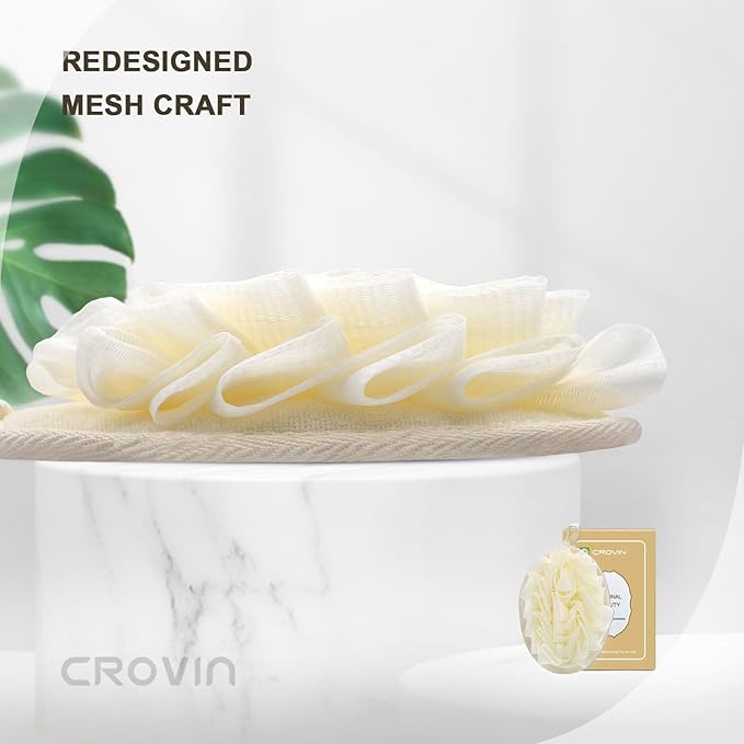 • Made with in CROVIN Cleanse your Skin . Top-notch, Eco-friendly sponge material made to mesh bath pouf , terry cloth fabrics combined, health and suitable for Multiple skin type. Good for keeping you skin balance and stimulate cellular vitality.