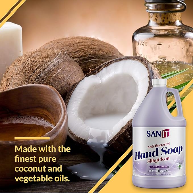 Sanit Silky Clean Antibacterial Liquid Gel Hand Soap Refill - Advanced Formula with Coconut Oil and Aloe Vera - All-Natural Moisturizing Hand Wash - Made in USA, Lavender, 1 Gallon