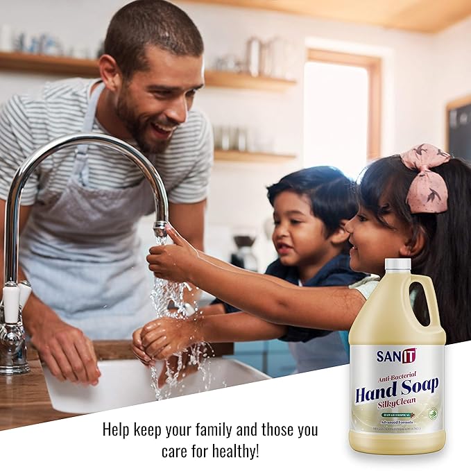 Sanit Silky Clean Antibacterial Liquid Gel Hand Soap Refill - Advanced Formula with Coconut Oil and Aloe Vera - All-Natural Moisturizing Hand Wash - Made in USA, Hawaii Tropical, 1 Gallon