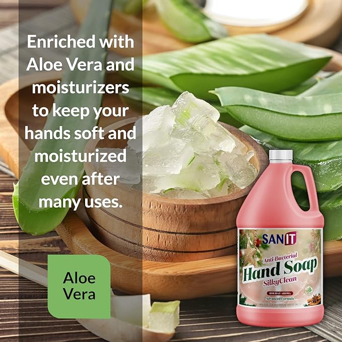 Sanit Silky Clean Antibacterial Liquid Gel Hand Soap Refill - Advanced Formula with Coconut Oil and Aloe Vera - All Natural Moisturizing Hand Wash - Made in USA, Holiday Aroma, 1 Gallon