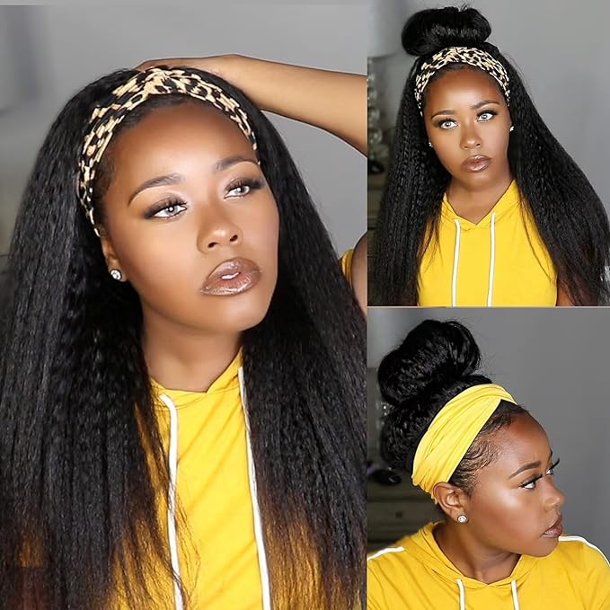 - Human Hair Headband Wig Cap Size : It is kinky straight headband wigs for black women,this wigs with elastic ice silk headband attached, 22.5 Inches(Medium) In Circumference, Fits Most Women, 4 Combs And Velcro Help To Secure.