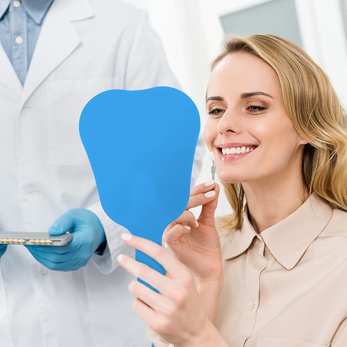 - Features: High-definition glass hand mirror, flat mirror surface, clear image without distortion, comfortable grip and cute tooth shaped mirror